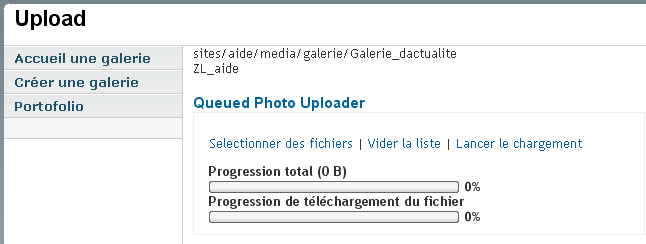 2. Envoyer des fichiers : Cet outil vous permet d'ajouter à votre galerie des photos que vous souhaitez publier. Cliquez sur "Sélectionner des fichiers" puis cliquez sur la photo que vous souhaitez ajouter à votre galerie. Puis cliquez sur "Lancer le chargement". Vos photos seront correctement ajoutées à votre galerie.