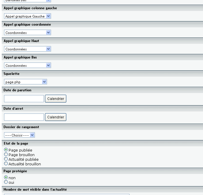 Cet outil vous permet de créer vos paramètres par défault. Les paramètres par défault représentent vos paramètres de page qui seront automatiquement publiés lors de la création d'une nouvelle page, comme par exemple les pieds de pages, les bandeaux situés en haut ou en bas, etc.