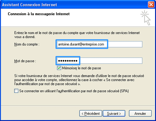 Le mot de passe, quant à lui, est crée par la société qui vous fournit l'adresse mail.