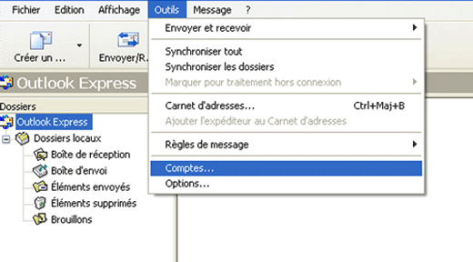 Ouvrez votre logiciel de messagerie Outlook Express, et allez dans « outils » puis