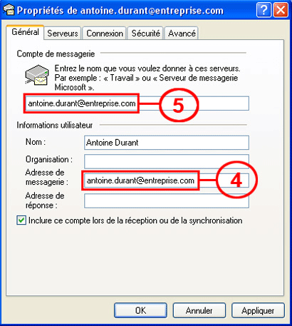 Le nom du compte est composée du préfixe (antoine.durant) suivi du nom de votre domaine (entreprise.com)
