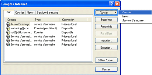 Vous remarquerez que dans la fenêtre « Comptes internet », une nouvelle adresse de messagerie s'est affichée, sous le nom : mail.entreprise.com.