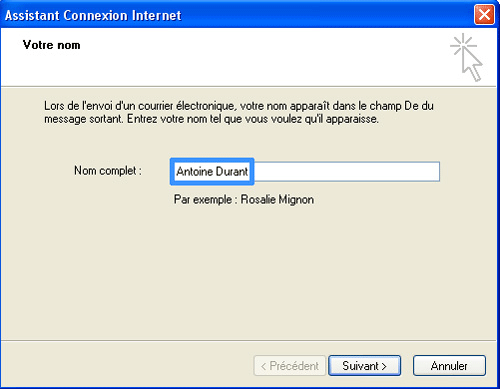 Dans « nom complet » entrez votre prénom et votre nom (dans l’exemple : Antoine Durant).