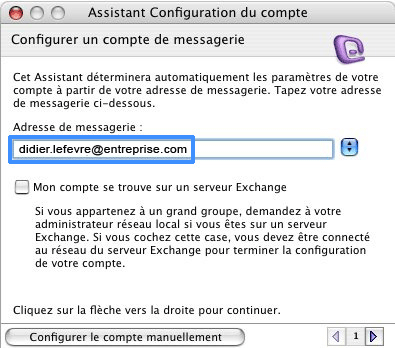 L'adresse de messagerie et le ID de compte correspondent à votre adresse (didier.lefevre) suivi de votre nom de domaine (entreprise.com)