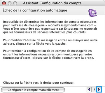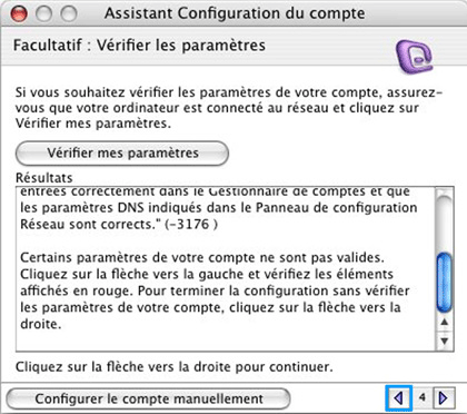 Retournez en arrière, par le biais de la flèche de gauche et vérifiez le nom des serveurs entrant et sortant mais aussi l'Id du compte et éventuellement re-tapez votre mot de passe.