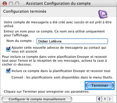 Nommer le compte de messagerie que vous venez de créer : choisissez un nom explicite (Didier Lefèvre).