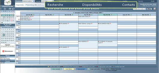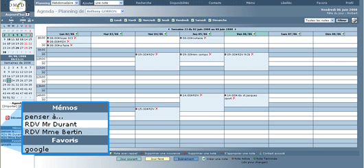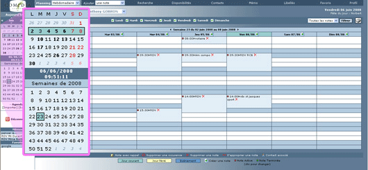 Le calendrier, par semaine et par mois, est disponible à gauche de l'écran.