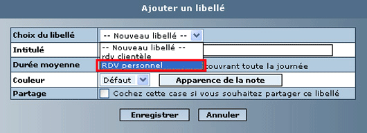 Un libellé vient d'apparaître (RDV personnel).