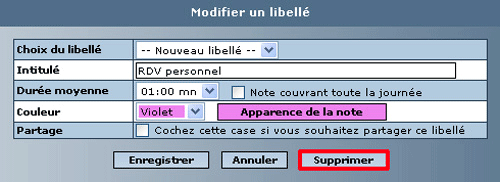 Si un libellé ne vous convient plus, vous pouvez le supprimer.