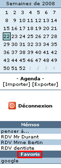 Ce menu vous permettra d'enregistrer des pages internet dans votre agenda, pour faciliter son accès.