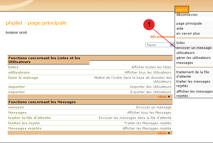 Ici, il est demandé de choisir la ou les listes auxquelles vous allez envoyer votre newsletter. Pour faire partir le message, cliquez sur "envoyer le message aux listes sélectionnées".