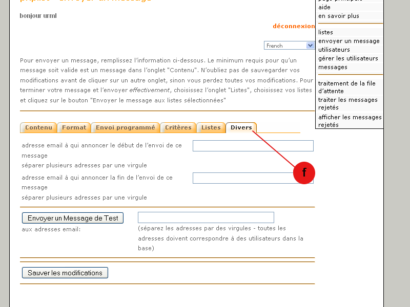 - Il est possible de faire le test seulement auprès de destinataires inscrits dans une liste de diffusion.