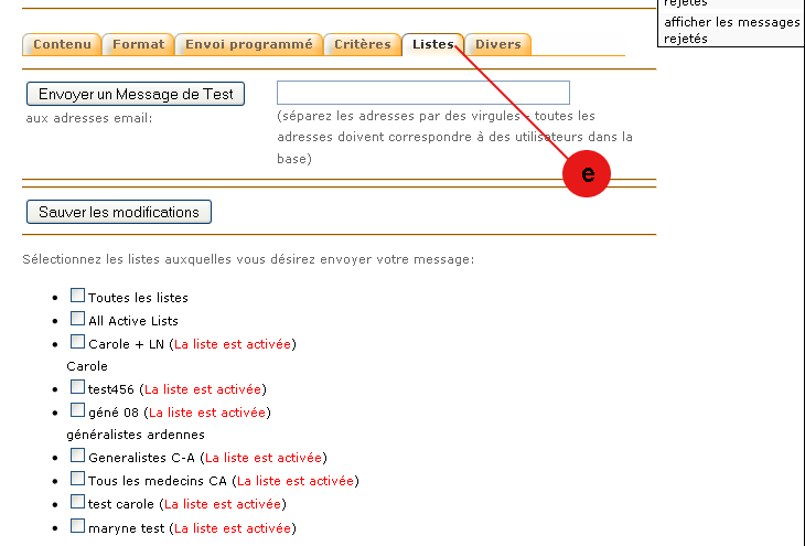 e. Listes de diffusion :