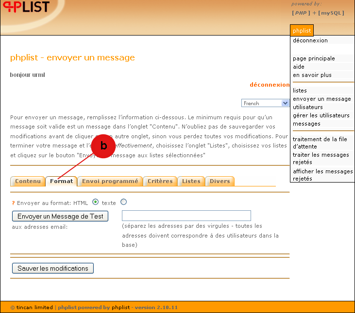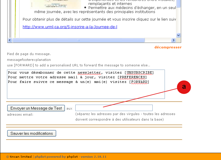 - Lors de l'envoi d'un message test, le destinataire reçoit 2 messages : un en HTML et l'autre en texte brut.
