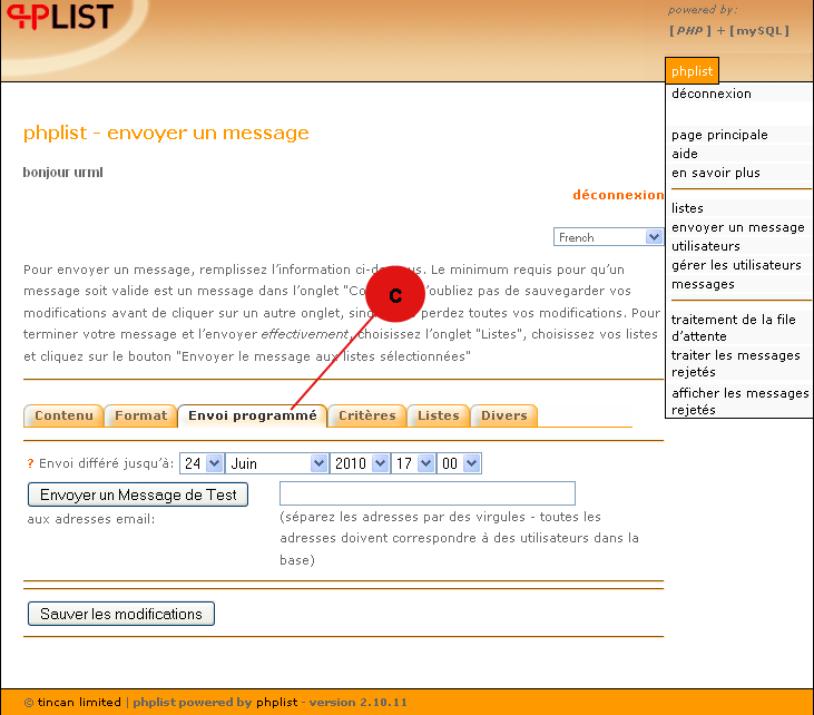 c. Envoi programmé :