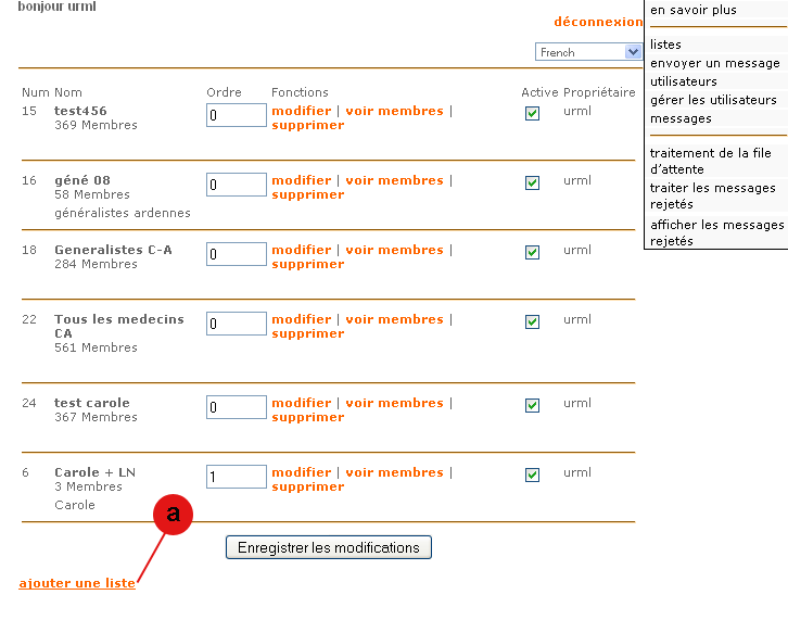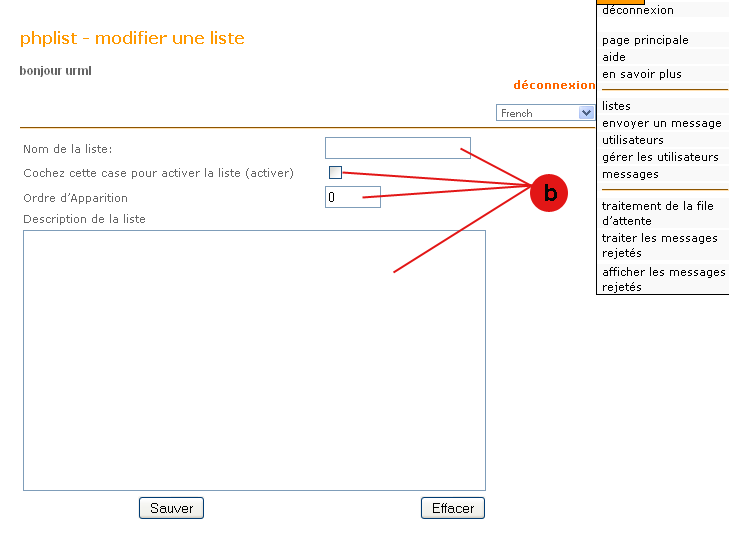 Ici, vous pouvez donner un nom à votre liste, cocher la case afin d'activer la liste, choisir son ordre d'apparition dans les listes de diffusion et lui donner une description. Cliquez ensuite sur "Sauver".