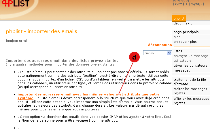d. Cliquez ensuite sur "Importer des adresses email avec les mêmes valeurs et attributs que votre système".